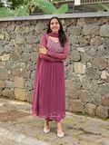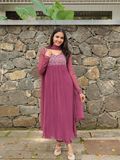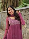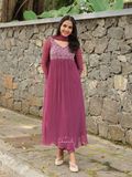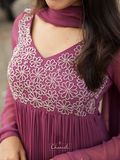 • Elegant Front-Gathered Top with Heavy Silver Floral Hand Cut-Bead Detailing